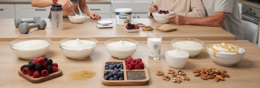 La répartition optimale consiste en 3-4 portions de 125-150g par jour, apportant chacune 15-20g de protéines complètes. Cette fractionnement permet de stimuler régulièrement la synthèse protéique musculaire, contrant efficacement le processus de catabolisme accéléré caractéristique du vieillissement. L’enrichissement en vitamine D, fréquent dans les formulations commerciales, renforce l’intérêt de ces produits dans la prévention de l’ostéoporose associée.